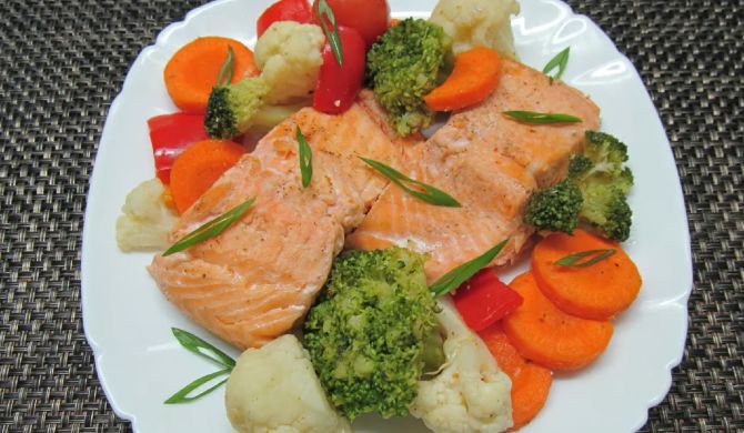 Начните с того, чтобы хорошо промыть рыбу и высушить ее бумажным полотенцем. Очистите и порежьте овощи: лук на полукольца, цукини и баклажаны — кружочками, перец и помидоры — дольками. Мелко нарежьте чеснок и зелень.